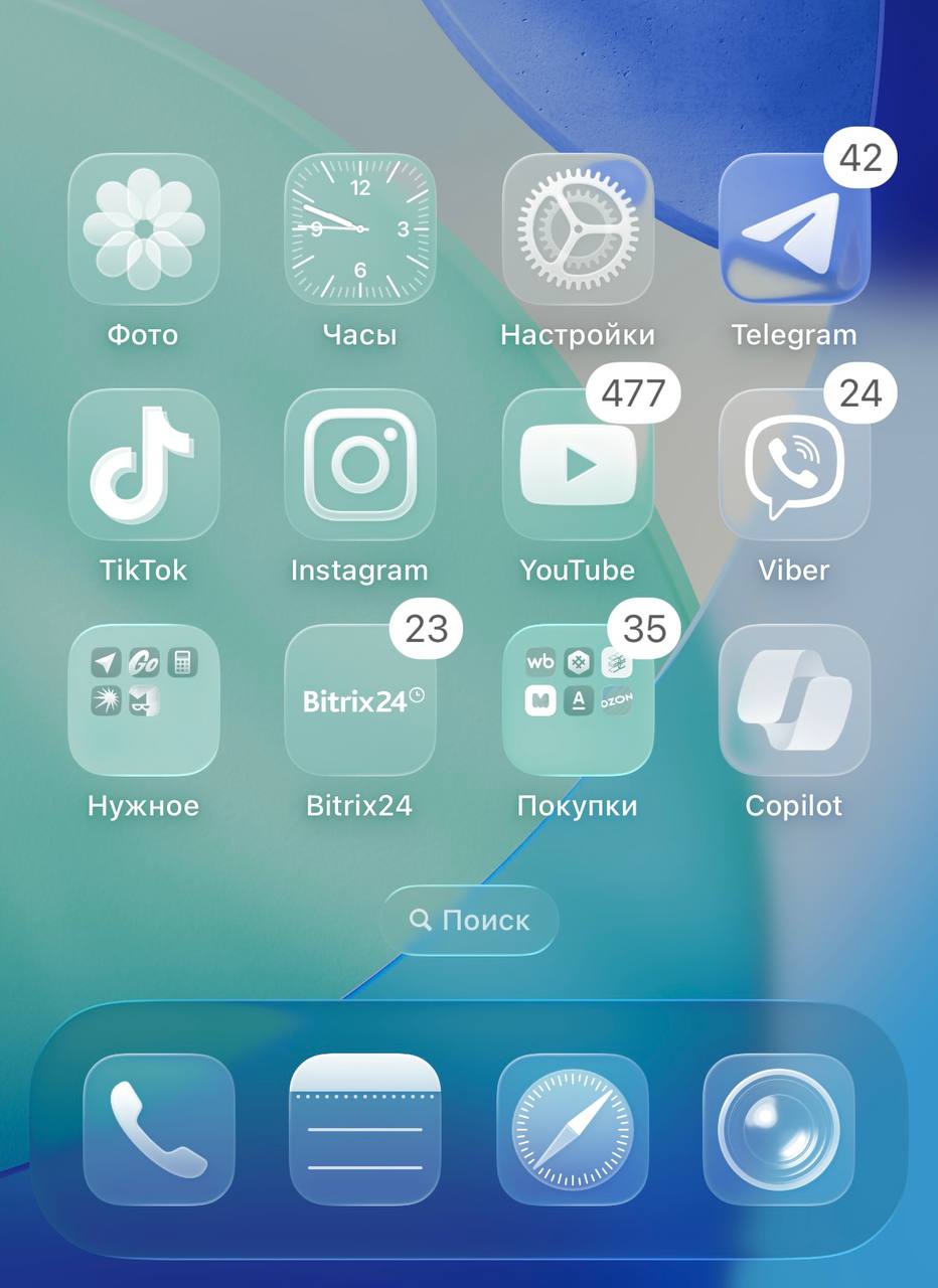 Установив IOS 26 пользователи заметят, как поменялся общий стиль системы. Первое и самое заметное изменение – это полный отказ от прежнего плоского стиля в пользу концепции Liquid Glass. Это не просто новый набор иконок, а целая философия дизайна. Разработчики стремились создать ощущение глубины и плавности на экране.