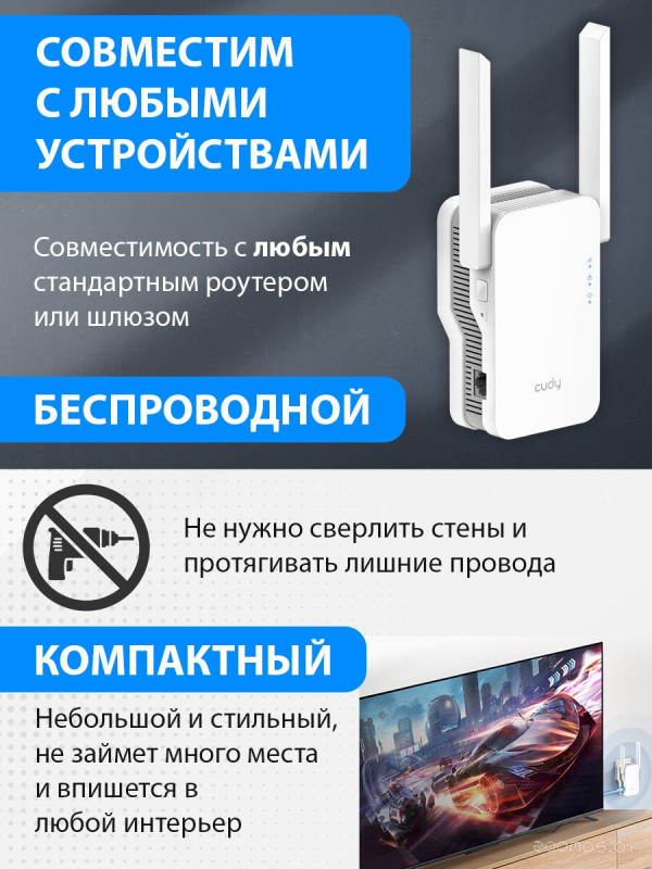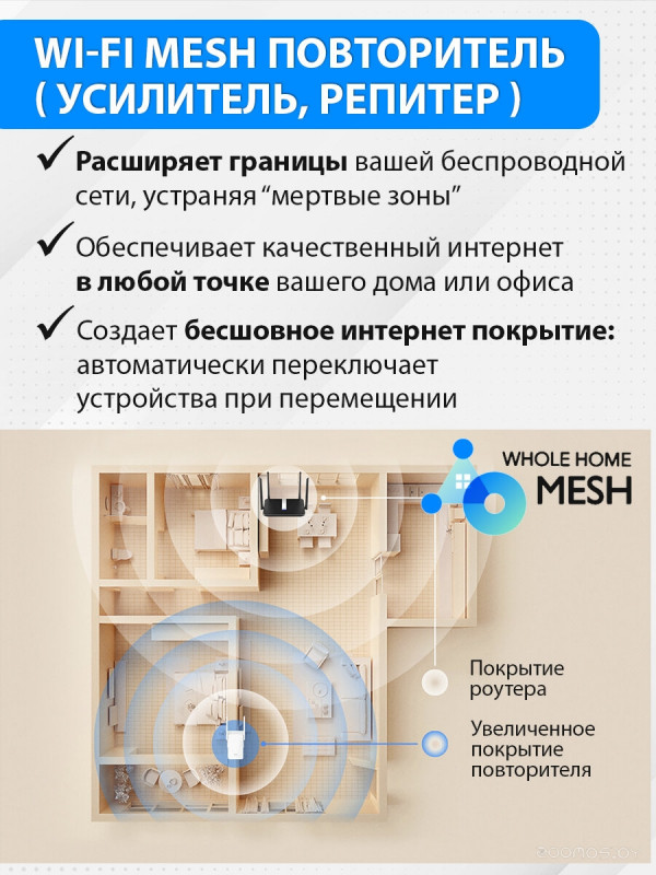 Краткое описание | Тип связи: Wi-Fi, Тип устройства: усилитель сигнала (репитер), Стандарт Wi-Fi: 802.11ax, Поддержка MIMO: есть, Режим репитера (повторителя): есть, Метод шифрования данных WEP: есть, Метод шифрования данных WPA: есть |