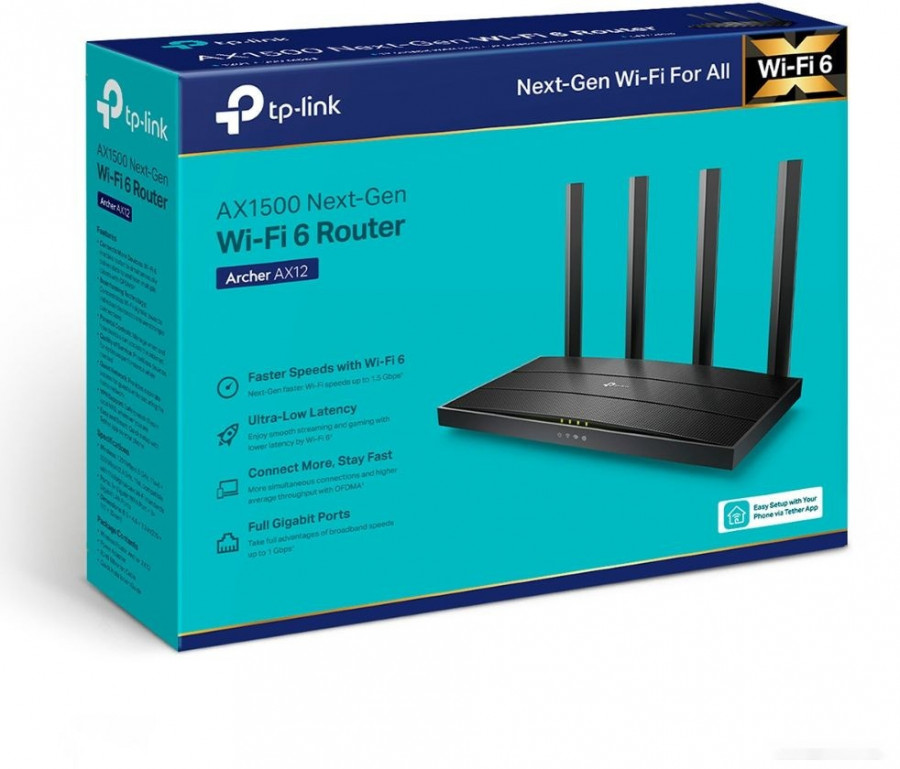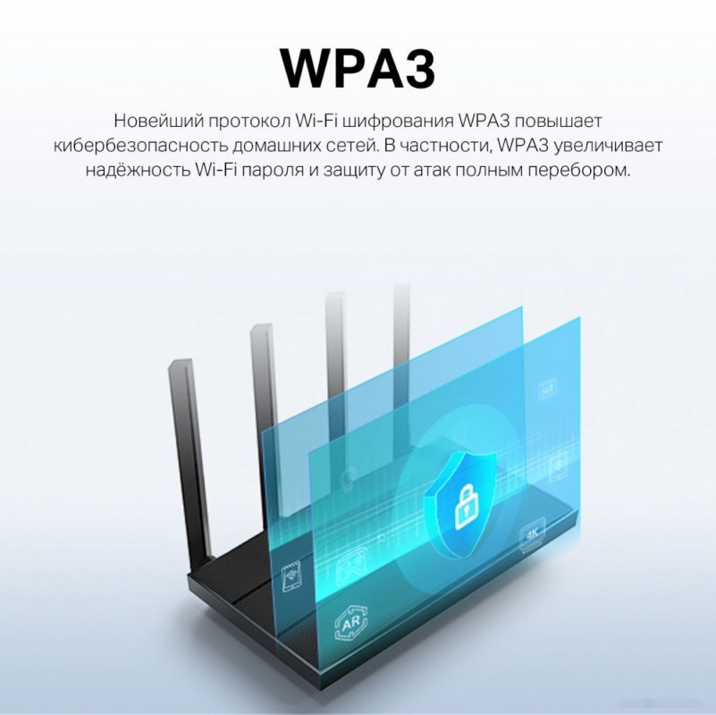 Краткое описание | Тип связи: Wi-Fi, Стандарт Wi-Fi: 802.11ax, Поддержка MIMO: есть, Метод шифрования данных WPA: есть, Поддержка 802.1x: есть, Межсетевой экран (Firewall): есть, Статическая маршрутизация: есть |