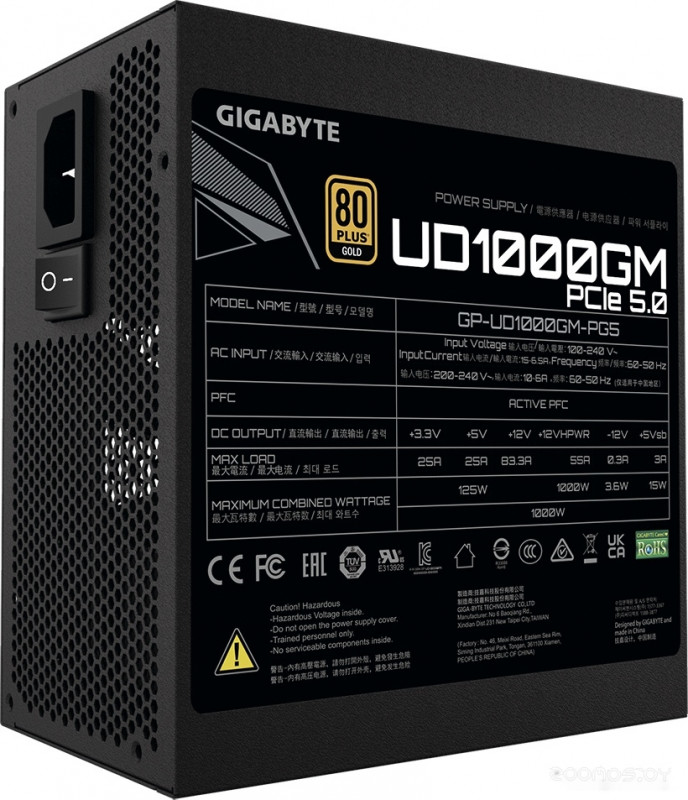Краткое описание | Мощность: 1000 Вт, Сертификат 80 PLUS: Gold, Система охлаждения: 1 вентилятор, Диаметр вентилятора: 120 мм, PFC: активный, Версия ATX12V: 2.31, Тип разъема для материнской платы: 20+4 pin |