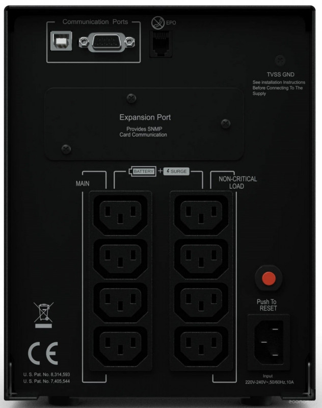 Краткое описание | Тип: line-interactive, Мощность: 900 Вт, Полная мощность: 1000 VA, Общее количество выходных розеток: 8, Количество розеток с резервным питанием: 4, Тип выходных розеток: IEC320-C13, Тип входной розетки (вилки): IEC320-C14 |