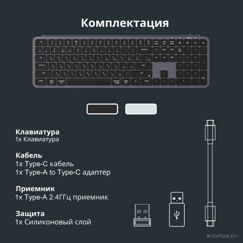 Комплект поставки | USB-приемник - кабель USB Type-C - USB Type-C - адаптер USB Type-C - USB Type-A - силиконовая пылезащитная крышка - документация |