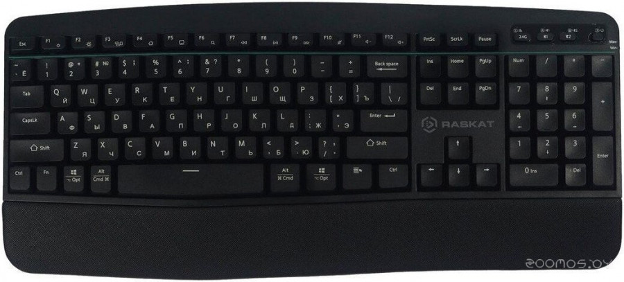 Краткое описание | Кириллица на клавишах: есть, Подставка под запястье: есть, Состав: клавиатура, Интерфейс подключения: USB, Предназначение: настольный компьютер, для компьютеров Apple, Тип беспроводной связи: радиоканал |